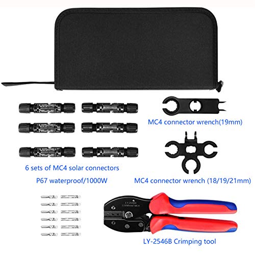 VIVLLEN Kit di strumenti di crimpatura a energia solare, include 2,5/4,0/6,0 mm², cavo fotovoltaico per pannello solare + 6 connettori per cavi maschio femmina