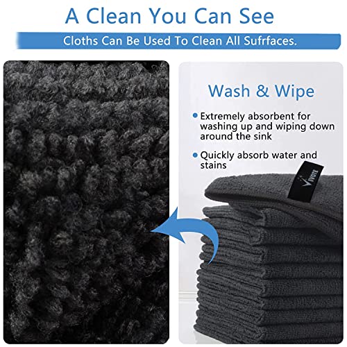 VIVOTE Panno di Pulizia in Microfibra,Strofinacci Cucina,Panni da Cucina,Premium Stracci Cucina,Asciugamani da Cucina Super assorbenti,Canovacci Cucina,9 Pezzi, 30 cm x 30 cm (Nero)