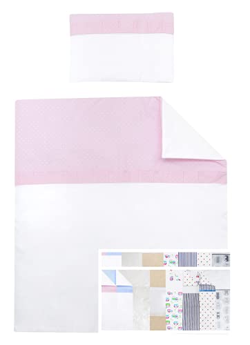 Vizaro - Piumino Lettino Neonato + Cuscino 70x80cm, 25x35cm - 100% PURO COTONE - Premium made in EU - Rosa E Bianco