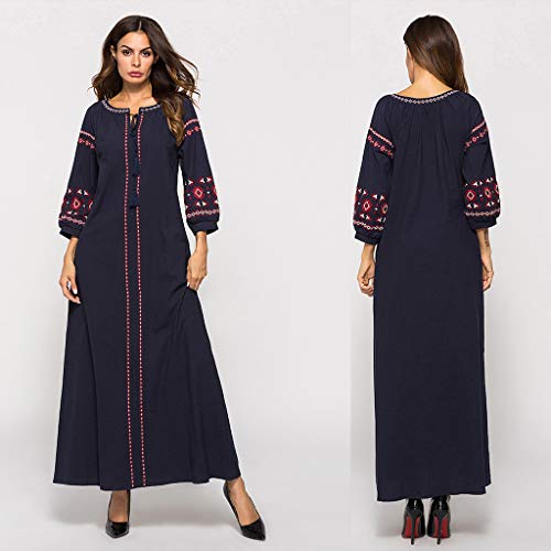 VJGOAL Donna 2020 Classico Abiti Musulmano Stampa Floreale Etnico Orientale Manica Lunga Elegante Girocollo Abaya Islamico Lungo Dress Maxi Dubai Ramadan Cocktail Sera e Cerimonia - Non Turbante