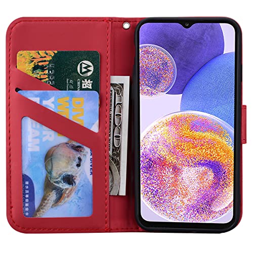 Vkooer Cover per Samsung Galaxy A23 (4/5G) Custodia Libro, Galaxy M23 Flip Protettiva Caso Premium PU Pelle Portafoglio Case con Kickstand e Porta Carte per Galaxy A23 Smartphone, Rosso
