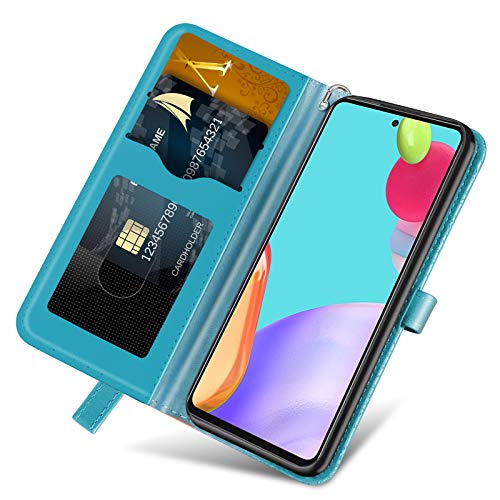 Vkooer Cover per Samsung Galaxy A22 5G Custodia Libro (Non per A22 4G) Flip Protettiva Caso Premium PU Pelle Portafoglio Case con Kickstand e Porta Carte per Samsung Galaxy A22 5G, Turchese