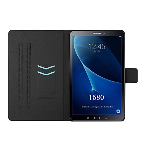 ➤ Design multifunzionale: la cover flip Samsung Galaxy Tab A 2016 ha 2 tasche per carte e 2 strisce antiscivolo. Puoi portare con te la tua carta di credito, carta d'identità, ecc. La striscia antiscivolo è sufficiente per sostenere saldamente il Samsung Galaxy Tab A 10.1 2016 e regolare l'angolo di visione. Molto adatto per guardare film o studiare tutti i giorni.