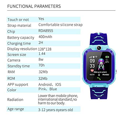 VKTY - Smartwatch per bambini, GSM LBS, impermeabile, IP67, con scheda SIM, chiamata bidirezionale, per bambini, studenti, colore: rosa
