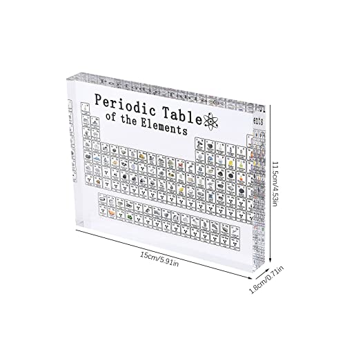 VKTY Tavola periodica con elementi reali all'interno, 6 x 4,5 cm acrilico tavola periodica di elementi chimici, 3D tavola periodica di elementi chimici, regali di chimica per bambini adulti