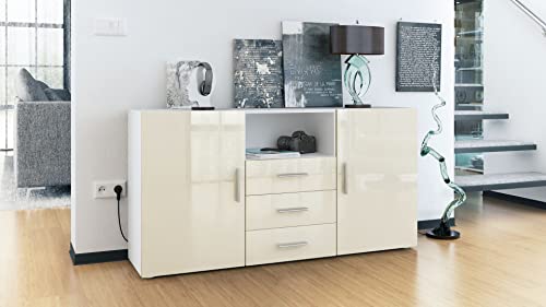 Vladon Credenza Skadu, mobile con 2 ante, 3 cassetti e 1 scomparto a giorno, bianco opaco/beige lucido (138,5 x 71,5 x 35 cm)
