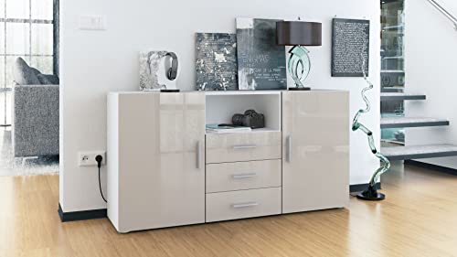 Vladon Credenza Skadu, mobile con 2 ante, 3 cassetti e 1 scomparto a giorno, bianco opaco/grigio sabbia lucido (138,5 x 71,5 x 35 cm)