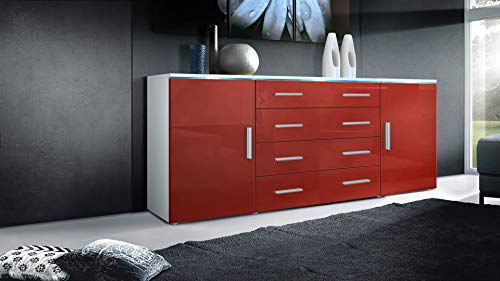 Vladon Faro V2 Credenza, mobile con 2 ante e 4 cassetti, bianco opaco/bordeaux lucido (166 x 72 x 35 cm)