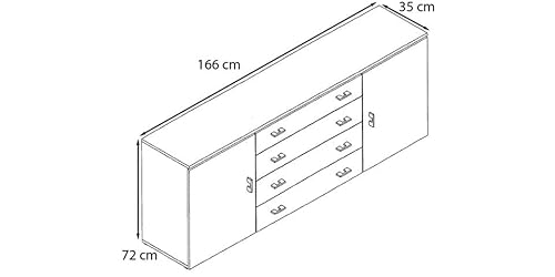Spazio di archiviazione: Questa credenza con cassetti e ante è un miracolo del mobile: quattro cassetti e due grandi ante, ciascuna con due spaziosi scomparti, offrono molto spazio per riporre ogni tipo di oggetto.