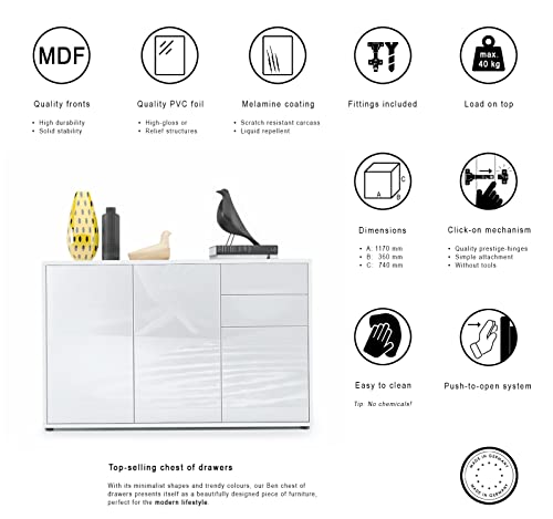 Materiale: I pregiati frontali in MDF laminato e la struttura in truciolato con rivestimento melaminico rendono la credenza piacevolmente leggera e stabile, oltre che particolarmente facile da pulire. Lavorazione di alta qualità - Made in Germany.