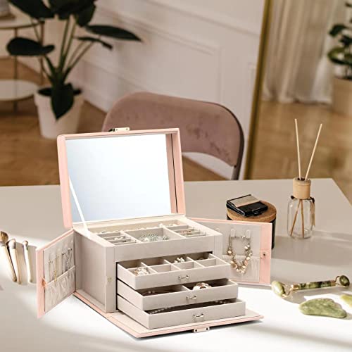 Vlando Cofanetto Portagioie con confezione regalo, Scatole Portagioie in Pelle con 4 Strati, Organizer Gioielli con Specchio e Serratura per Anelli Collane Orecchini, Regalo festa della mamma(Nero)
