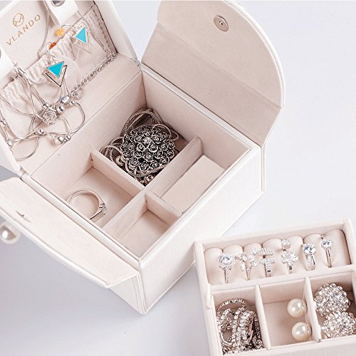 Vlando - Organizer portagioie con chiusura, di grandi dimensioni, per collane, orecchini, anelli, design a forma di mezzaluna rotante ideato da Holland Designer, White, White(Rhomb Texture)