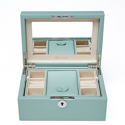 Vlando Organizzatore di gioielleria Lockable per Necklandes Earring Rings Storage Case, Venire con Key, Aqua Green