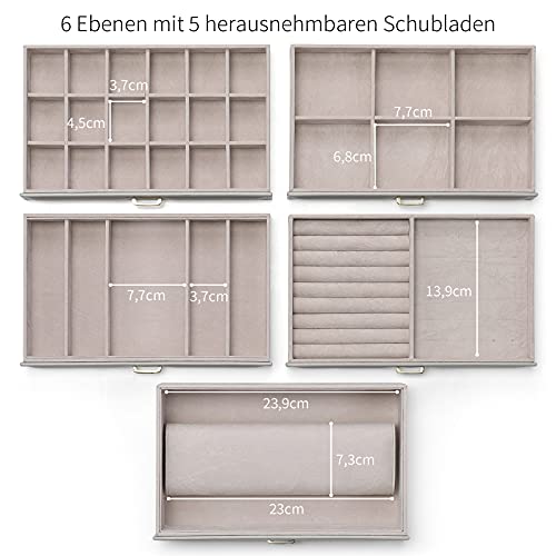 Vlando Scatola Portagioie con 5 cassetti staccabili e Specchio di grandi, Custodia per Gioielli, Organizzatore per Anelli, Collane, Orecchini, Braccialetti (Grigio)