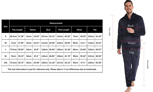 Vlazom Uomo Pigiama Sets Invernale Lungo,Caldo Pigiama in Pile Cappuccio Pigiami Due Pezzi con Tasche Comodo e Morbido PJ Set Uomo Natale Inverno Idea Regalo,S,Blu Scuro