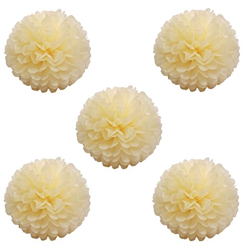 Vlovelife, fiori di carta decorativi, a forma di pompon, 15,2 cm, per festa di nozze, compleanno, decorazioni, confezione da 10 Ivory
