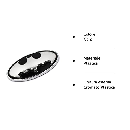 VmG-Store, stemma in 3D di Batman, colore nero, cromato, in plastica, con retro adesivo in materiale espanso