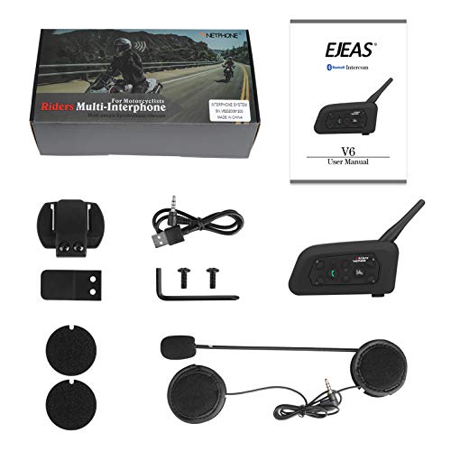 VNETPHONE V6 Interfono Moto Bluetooth 1200 m Interfono in Tempo Reale Auricolare Casco Moto 6 Motociclisti Riduzione del rumore DSP Impermeabilità