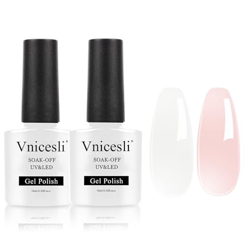 Vnicesli 2 Colori Smalto Semipermanente Bianco Latte Rosa, 10ml Smalto Semipermanente per Unghie in Gel UV LED Soak Off Gel Semipermanente Unghie Rosa e Bianco Latte Manicure Francese Naturale