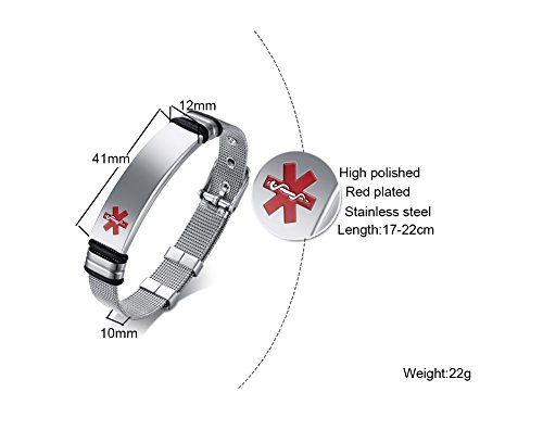 Vnox Acciaio Inossidabile Personalizzato Incisione Nome ICE Medical Alert ID Braccialetto Regolabile Sos Emergenza Personalizzato per Uomo Donna