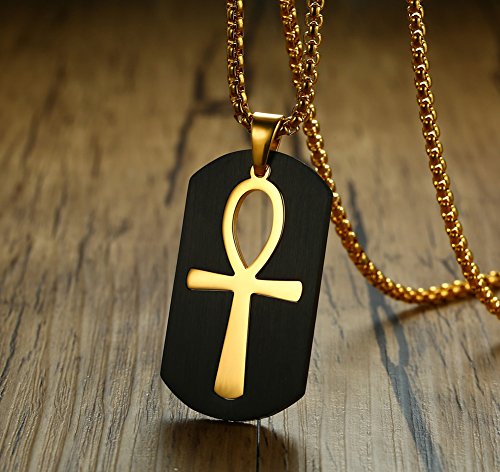 Vnox Anello Ankh di Acciaio Inossidabile dell'uomo di Vita Tag della Cassa del Pendente della Collana Oro Nero,Rimovibile,Catena Libera