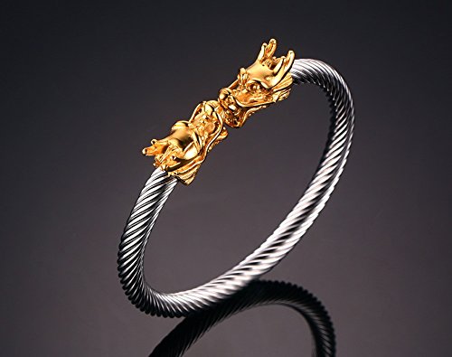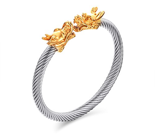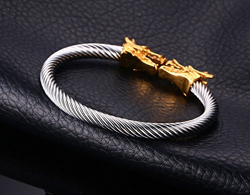Vnox Argento Uomo Acciaio di Fronte Oro Dragon Head Wire Vichingo del Braccialetto del Polsino