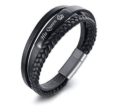 Vnox Braccialetto Intrecciato a Mano in Vera Pelle Braccialetto Magnetico Fibbia Sua Regina e Il Suo re Coppie di Corrispondenza Braccialetto per Le Donne
