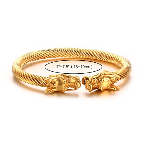 Vnox Uomo Acciaio di Fronte Dragon Head Wire Vichingo Polsino del Braccialetto dell'oro