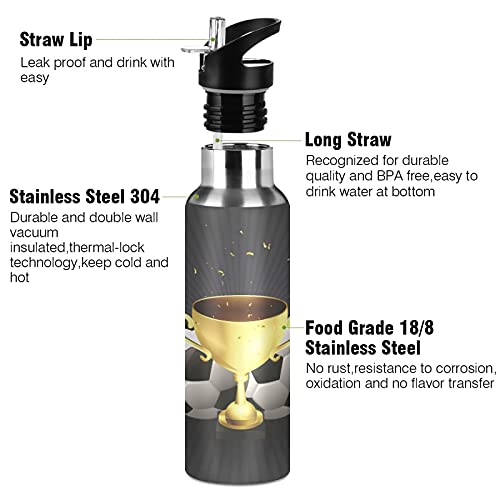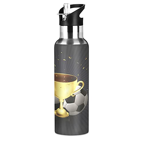 Vnurnrn Carino Sport Calcio Calcio Bottiglia Acqua Acciaio Inox, Isolato Borraccia Termica Senza BPA 600ML per Bevande Calde e Fredde per Bambini Sport Ciclismo Scuola