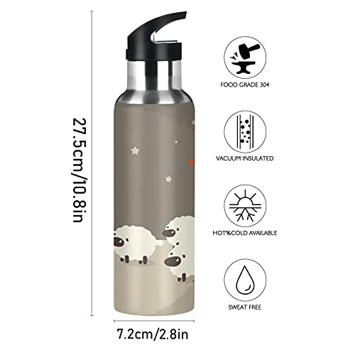 Vnurnrn Simpatica Stella Di Pecora Bottiglia Acqua Acciaio Inox, Isolato Borraccia Termica Senza BPA 600ML per Bevande Calde e Fredde per Bambini Sport Ciclismo Scuola