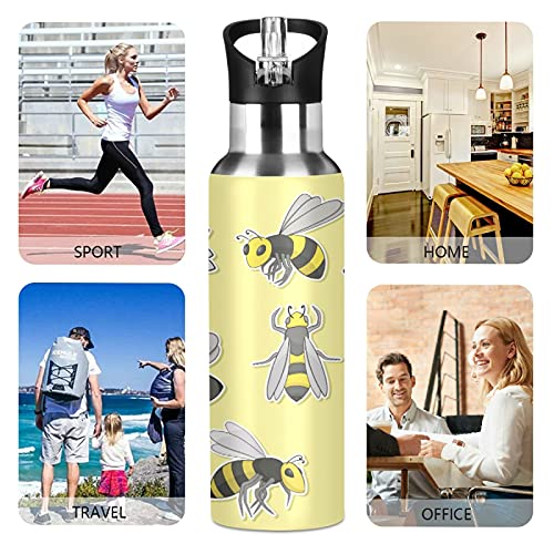 Vnurnrn Simpatico Animale Arte Baby Ape Bottiglia Acqua Acciaio Inox, Isolato Borraccia Termica Senza BPA 600ML per Bevande Calde e Fredde per Bambini Sport Ciclismo Scuola