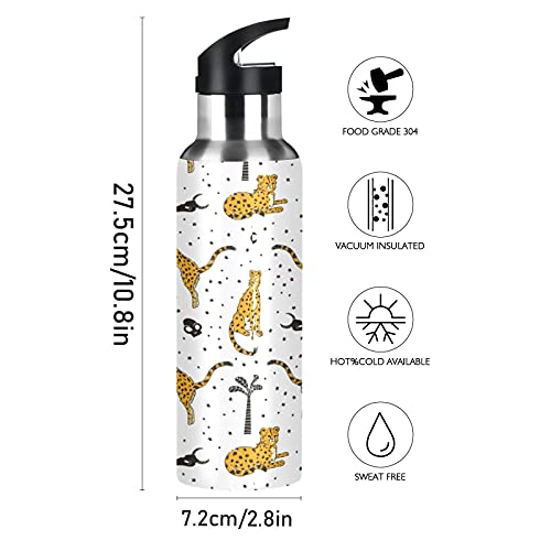 Vnurnrn Simpatico Animaletto Leopardato A Pois Bottiglia Acqua Acciaio Inox, Isolato Borraccia Termica Senza BPA 600ML per Bevande Calde e Fredde per Bambini Sport Ciclismo Scuola