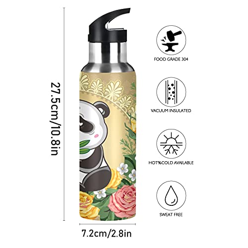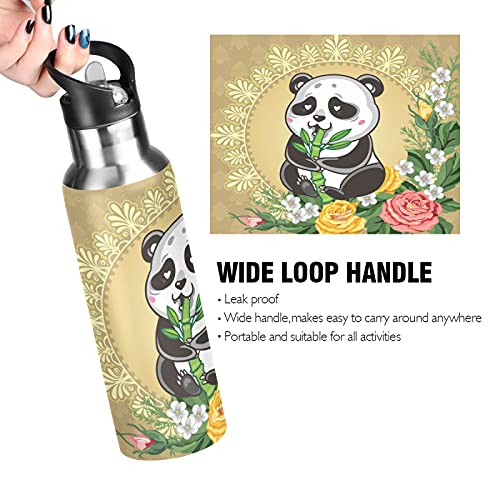 Vnurnrn Simpatico Animaletto Panda Bottiglia Acqua Acciaio Inox, Isolato Borraccia Termica Senza BPA 600ML per Bevande Calde e Fredde per Bambini Sport Ciclismo Scuola