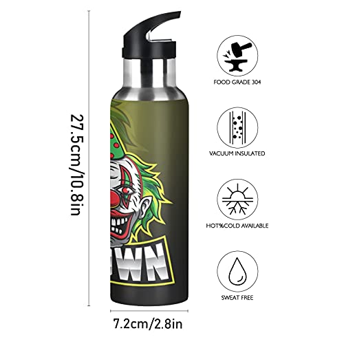 Vnurnrn Simpatico Pagliaccio Teschio Di Zucchero Bottiglia Acqua Acciaio Inox, Isolato Borraccia Termica Senza BPA 600ML per Bevande Calde e Fredde per Bambini Sport Ciclismo Scuola