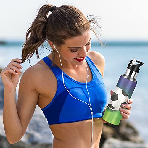 Vnurnrn Simpatico Regalo Sport Calcio Calcio Bottiglia Acqua Acciaio Inox, Isolato Borraccia Termica Senza BPA 600ML per Bevande Calde e Fredde per Bambini Sport Ciclismo Scuola