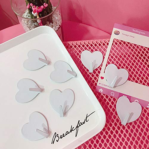 VOANZO Ganci da parete, 10 pezzi Ganci autoadesivi a forma di cuore, Gancio resistente Ganci senza cuciture a forma di cuore carino per appendere borse Forniture da cucina (bianco)