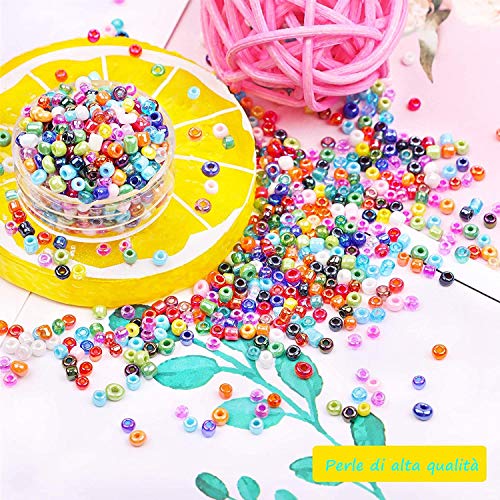 Voarge 24000 Pezzi Perline Vetro Perline Colorate, i Lavori di Fai-da-Te con Bambini, Decorazioni Fatte in Casa e per Altre Idee Ingegnose Bigiotteria (2mm 24 Colori)