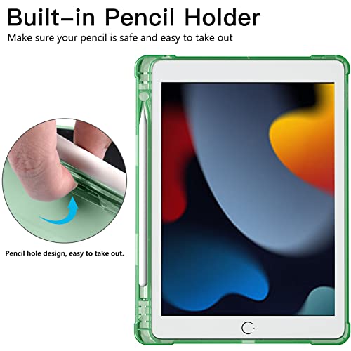 Vobafe Cover Compatibile con iPad 9a Generazione 2021/8a Generazione 2020/7a Generazione 2019, Custodia Posteriore Smerigliata Traslucida per iPad 10.2 Pollici con Portamatite (Verde-PC)