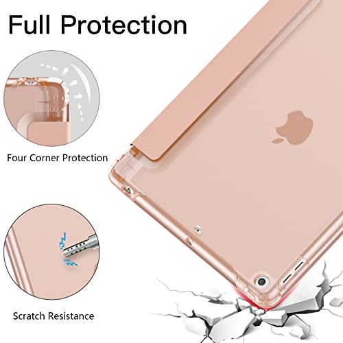 Vobafe Cover Custodia Compatibile con iPad 9a Generazione 2021/iPad 8a Generazione 2020/iPad 7a Gen 2019, Cover Posteriore Smerigliata Traslucida per iPad 10,2 Pollici con Portamatite, Oro Rosa