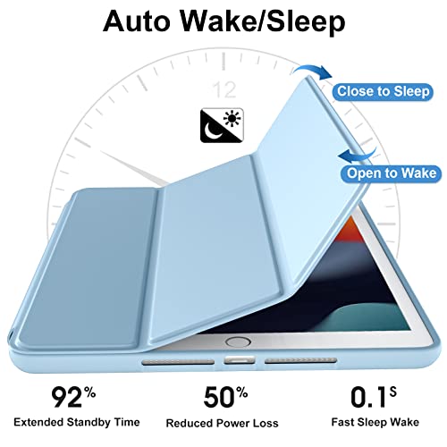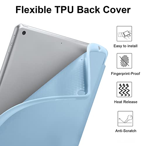 Vobafe Custodia Compatibile con Cover iPad 9 8 7 Generazione (10.2 Pollici, 2021/2020/2019 Modello), Leggero Custodia Protettivo Supporto Pieghevole con Pencil Holder, Auto Svegliati/Sonnoo Azzurro