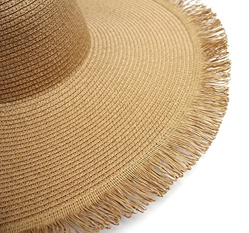 Vobozeany Cappello di Paglia Donna Estivo Cappello di Paglia a Tesa Larga Elegante Cappello da Sole Pieghevole Protezione UV Cappello da Spiaggia per Vacanza All'aperto
