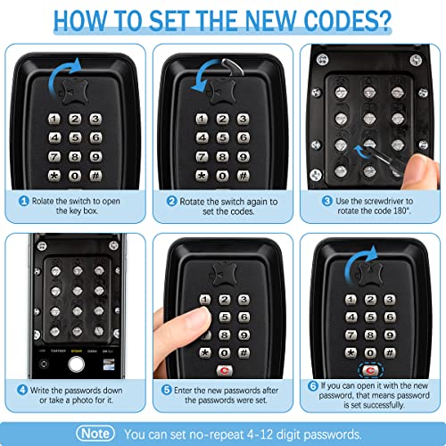 【 】Niente è più sicuro di una cassetta di sicurezza con password a dodici cifre. 12 cifre offrono al massimo 10000 combinazioni, il che rende davvero difficile da decifrare, molto più sicuro di 4 cifre combinazione di blocco. Si consiglia di scattare foto o annotare i record dopo aver impostato la password. Una volta dimenticata la password, non sarà più possibile utilizzare la cassetta delle chiavi.