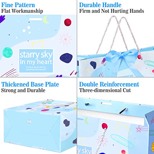 VOBUKE 6 Pezzi Sacchetti Regalo con Manici e Fiocco, Buste Regalo Colorata, Sacchetti Confetti Di Grande Capacità, Sacchetti Regalo Carta Per Compleanno Matrimonio Festa Di Laurea (36x12x25CM, Blu)