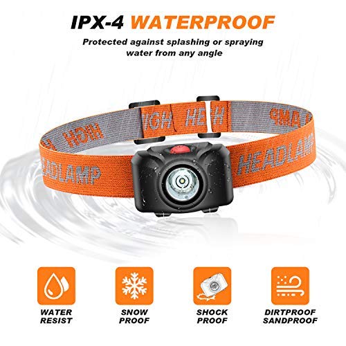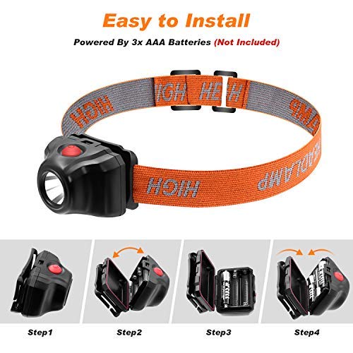 ☑ Peso leggero e tipo di batteria: Con un peso di circa 1,64 once, la testa ruota fino a 45 gradi. Il suo design moderno e compatto è il più richiesto oggi sul mercato, perfetto per chiunque abbia bisogno di una torcia frontale, come corridori, camper e avventure all'aria aperta. Facile da indossare, alimentato da 3 batterie AAA (non incluse).
