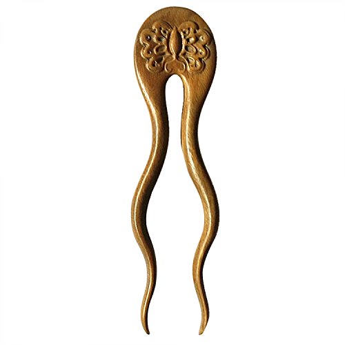 Vococal -Donne Il Legno di Sandalo di Legno Curvo 2 Poli Forcina Capelli Stick Accessorio per Capelli Verde