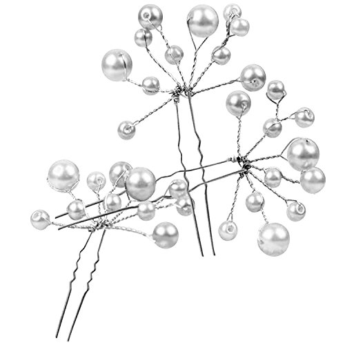 Vococal - 12 Pezzi a Forma di U Forcina Pearl Artificiale Capelli Fiore Pins da Sposa Accessori Perno Mollette per Capelli Bianca