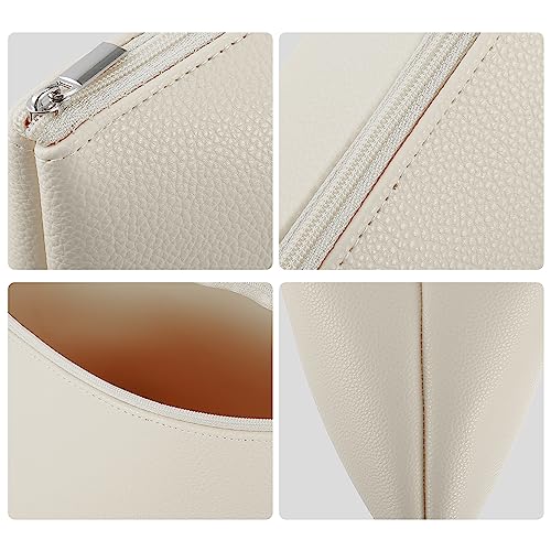 VOCOSTE 1pz Portatile Trucco Borsa, Toilette Borsa, PVC Pelle Beige Bianco
