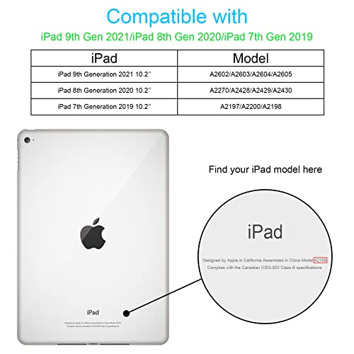 【Tablet Compatibilità modello】Disegnato per tablet è adatta SOLO per iPad 9th Generation 2021 rilasciato (numero modello: A2602/A2603/A2604/A2605),iPad 8a generazione 2020 (A2270/A2428/A2429/A2430), iPad 7a generazione 2019 (A2197/A2200/A2198).Controllare il modello del tablet prima dell'acquisto.