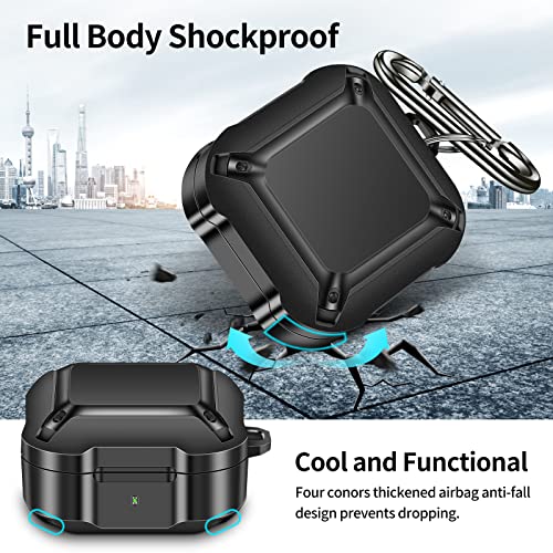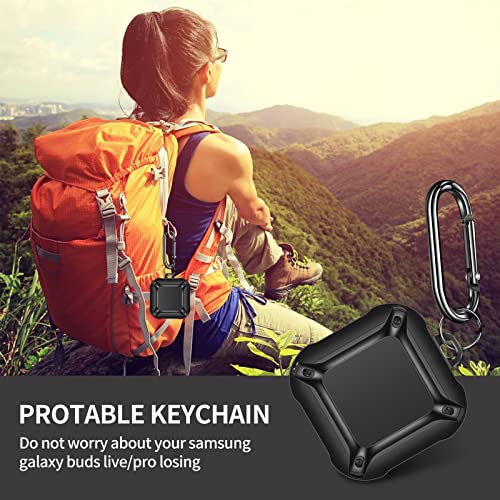 VOFOLEN Custodia per Samsung Galaxy Buds 2/Galaxy Buds Pro/Galaxy Buds Live Case Silicone Armor Militare Protettiva Robusto Antiurto Moschettone Ricarica Senza Fili Cover per Galaxy Buds 2, Nero