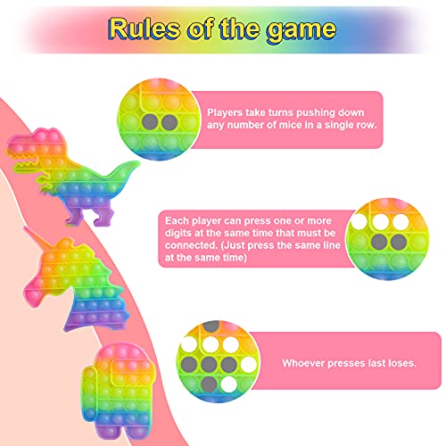 VOFOLEN 3 Pizze Pop Push It Bubble Sensoriale Fidget Giocattolo,Push Antistress Arcobaleno Spremere Giocattoli Silenzioso Aula Allenamento Logico Giocattoli,Caramella Dinosauro&Robot&Unicorno